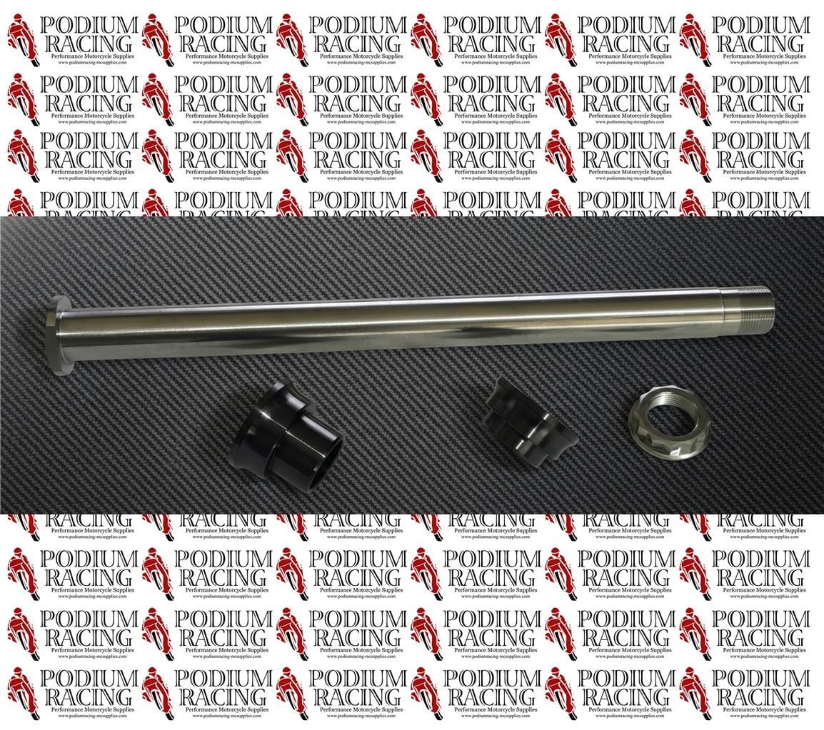This listing is for a TITANIUM BLACK rear axle, including the left and right TITANIUM BLACK wheel spacers & matching rear axle nut predrilled for safety wire, for the Ducati Streetfighter year +2025 models.