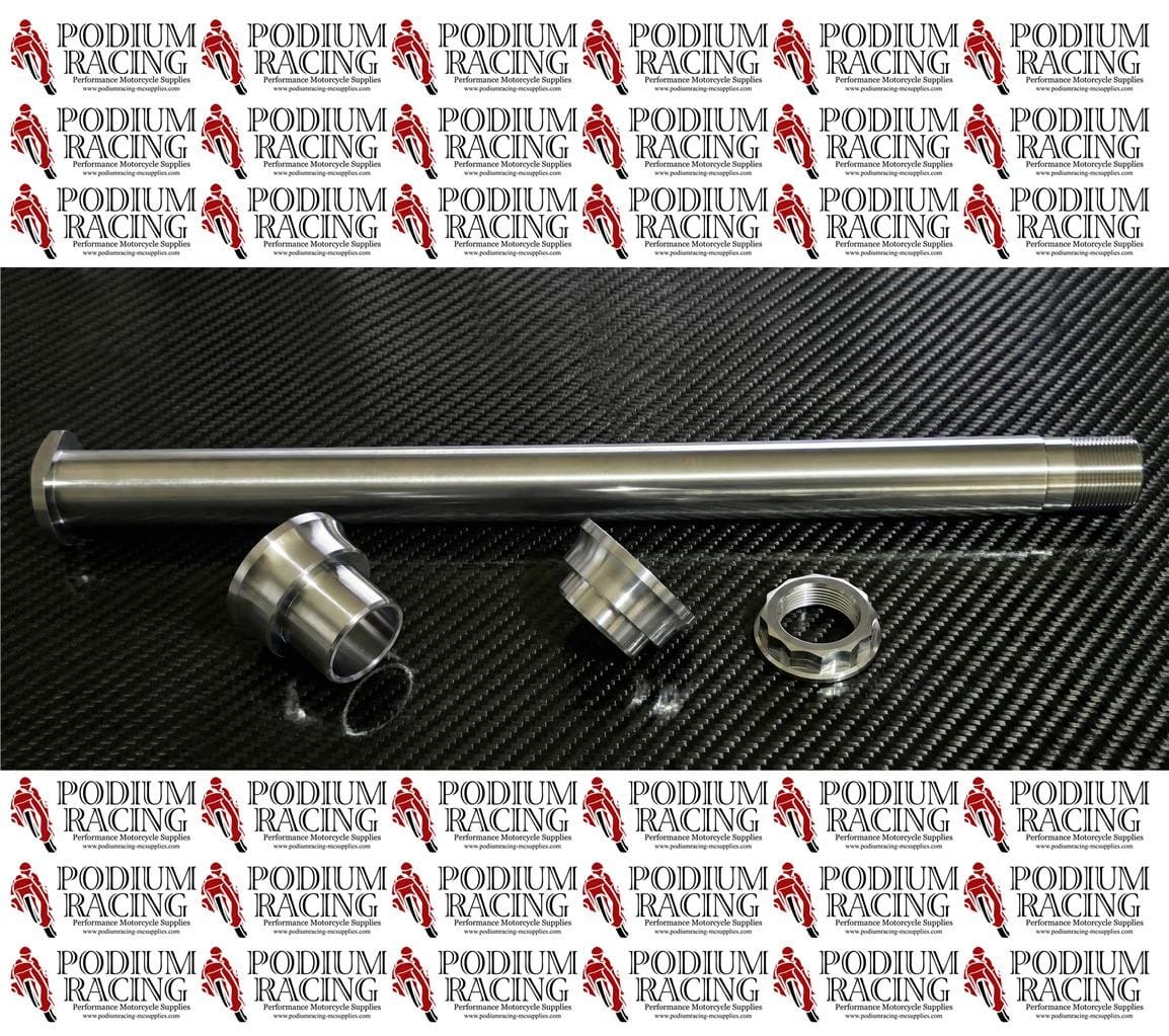 This listing is for a TITANIUM SILVER/NATURAL rear axle, including the left and right TITANIUM SILVER/NATURAL wheel spacers & matching rear axle nut predrilled for safety wire, for the Ducati Streetfighter year +2025 models.
